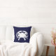 Witte krabvorm tegen een donker nautisch blauw. De soort is een blauwe krab. U kunt altijd een gepersonaliseerd tekstbericht, zoals een familienaam, toevoegen. Of verwijder de krab op de achterkant en voeg je familie informatie en of foto daar terug. Creëer je eigen strandhuiskussen.