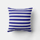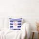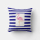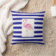 Zeilblauw en witte gestreepte katoenkussen met een roze flamingo.
