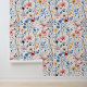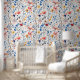 Blauw-witte Waterverf Wildflower peel en stick behang.