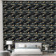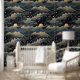 Een blauwe nachtelijke hemel als achtergrond, versierd met sterren en een maan. Retrostijl