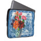 Kleurrijke bloemen in een vaas zijn gerangschikt voor een traditioneel blauw wildevormig ontwerp. De blauwe patronen van de vase echo de kleuren en de stijl van de Aziatische geïnspireerde achtergrond. De heldere bloemen hebben een hedendaagse look, ook al zijn ze op een antiek, Victoriaans handelskaart gedrukt. Dit prachtige afbeelding kan uitnodigingen, aankondigingen en accessoires versieren.
