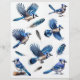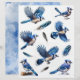 Dit tweezijdige papier met een mix van vliegende en rustende Blue Jays en hun veren is perfect voor plakboeken, junk journals, het maken van kaarten, collages en meer.