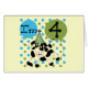 Koe 4e verjaardagsontwerp met blauwe en groene ballonnen en polka stippen, geweldig voor ieder kind dat van koeien en landbouwhuisdieren houdt en zijn vierde verjaardag viert!
