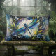 Blauwe Libelle Waterverf Botanisch Kussen