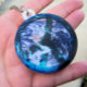 Digitale creatie van een blauw-groen vredessymbool bovenop de planeet Aarde. De steekproeffoto werd genomen nadat ik dit product op de optie van de sleutelhanger bestelde. Er zijn andere stijlen beschikbaar.