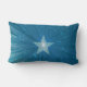 Moderne vormgeving met een "schitterende" blauwe en witte ster op een "gloeiende" achtergrond. De kussen van de draad met een klantgericht ontwerp voor u om met uw eigen tekst, afbeeldingen en ideeën te personaliseren. Dit is een digitaal afbeelding gemaakt met behulp van originele foto's en digitale technieken en geprint op stof, dat niet schittert of echte enkels bevat.
