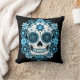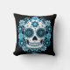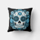 Dia de los Muertos sugar schedel in kleurrijke tinten blauw omringd door bloemen.