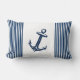Een elegante, moderne en trendy nautische marine blauw en witte lumbool of gooi kussens of kussen met blauw en witte strepen en anker aan de ene kant en een blauw marineklein aan de andere kant. Dit anker accent kussens kuststrandontwerp zal elk huisdecor, strandhuis, dek, patio, woonkamer, sofa, slaapkamer, kantoor, boot, kleuter, universiteits- of universiteitskamer, tieners, jongens en kinder slaapkamers verbeteren.