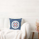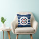 Langwerpige en trendy marineblauw en witte nautische, strand- of kuststrook gooien kussens met blauw en witte strepen en compass roos aan de ene zijde met een rood accent en een blauw en witte strepen met een golvende achtergrond aan de andere zijde. Met deze nieuwe, schone, ongeëvenaarde kleuren en het nieuwe ontwerp wordt elk huis, strandhuis, fontein, sofa, slaapkamer, kantoor of boot verbeterd.