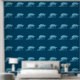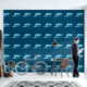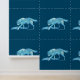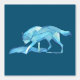Een gestileerde blauwe wolf (Canis lupus) werpt een schaduw terwijl hij door het sneeuwterrein loopt.