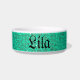 Blauwgroen Aqua Glitter Sequin Disco Glitz Pet Foo Voerbakje