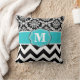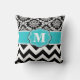 Show op een leuke manier van je persoonlijke stijl met deze blauwgroen en zwarte dameskussen en kussen van de chevron-printmonogram.