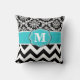 Blauwgroen Black Damask Chevron Monogram Pillow Kussen