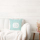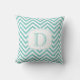 Blauwgroen en wit Chevron Pattern Monogram Kussen. Personaliseer met uw eigen initiaal.