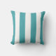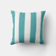 Blauwgroen en witte brede strepen op een ontwerper werpen kussen. Met gestreept kussens worden grote accentuerdecoraties gemaakt, zowel tegen gekleurde als tegen gekleurde sofa's, stoelen en design in de ruimte. Ideaal voor woonboten, woonkamers, slaapkamers, huisjes, strandhuizen en kinderkamers.