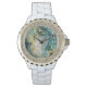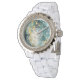 Blauwgroen & Goud Marmeren Strass Horloge – Wit Em