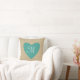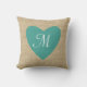 blauwgroen hartmonogram kussen voor burlap