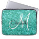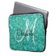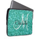 Blauwgroen mousserende glitter, monogrammen laptop sleeve