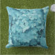 blauwgroen blauw kussen, kussen voor de bank, met grote blauwe brandkranen aan beide zijden.