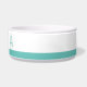 Turquoise blauw-groene heldere, blauwgroen, gepersonaliseerde dierenkom voor het voedsel of water van uw hond of kat met een eenvoudige, minimalistische, en moderne streep en dunne letterletters zullen er in elke ruimte geweldig uitzien.