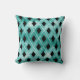 Blauwgroen, waterige waterverf met een zwarte en witte argyle-ontwerp op een kussen.