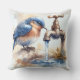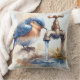 Een blauwvogel zit naast een metalen kraan en observeert het stromende water eronder