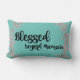Blessed Beyond Measure bevat een aantal Kussens. Aqua kussens met roze bloemenaccenten met typografie, 'bovenmaats gezegend'. Bekijk meer bij Christelijke offertes Shop.