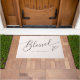 Modern and simple doormat for a happy family! The typography text says "Blessed" in a script font with a heart. You can add your family name at the bottom.