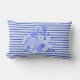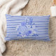 Joli bleu Delft inspiré accent lancer oreiller fait dans un motif à bandes horizontales bleu deux tons avec un cluster de fleurs bleues sur l'avant. Customisez d'ajouter du texte à cette jolie touche décoratrice. Des produits correspondants sont disponibles.