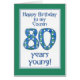 Une quatre-vingtième carte d'anniversaire élégante pour un cousin, avec le numéro 80 a fait à partir d'un collage de papier peint à la main, dans le bleu, vert et le blanc, coordonnant avec le lettrage et la frontière de la carte. N'oubliez pas que vous pouvez facilement customiser l'intérieur de cette quatre-vingtième carte d'anniversaire.
