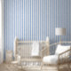 Papier peint rayé bleu et blanc.