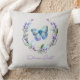 Un bel ajout à votre décor maison, ce coussin est disponible en différentes tailles et tissus ! Il présente un papillon bleu dans une couronne de lavande. Mettez à jour le texte pour répondre à vos propres besoins.