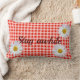 Blijf Awhile tekst op rood en wit gingham Kussen