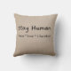 Een werpkussen met wat advies dat de moeite waard is om op te hangen. Blijf menselijke mensen!