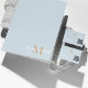 Bloc-notes moderne, élégant et tendance présenté ici en bleu poussiéreux avec monogramme bronzé et typographie de nom blanc. Les couleurs peuvent être customisées à votre choix