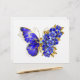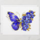 Sieraden, blauw, saffier, sprankelende bloem vlinder met vleugel versierd met blauwe, kostbare bloemen met gouden bladeren op witte achtergrond.