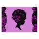 Een retro- ontwerp met magenta bloemen in afro-amerikaanse vrouw omringd door een zwarte en magenta scallop veredelde mozaïek.