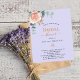 Een trendy violette, lavendelkleurige achtergrond. Versierd met een rozen gouden en blozend roze bloemblaadje, rozen bloemblaadjes en groene watergekleurde eucalyptusbladeren, takjes, groen en een nepgouden tak. Personaliseer en voeg de naam van de bruid toe om te zijn en feestdetails. Zwarte en goudkleurige letters. 1 vel = 1 uitnodiging afgedrukt rand tot rand.