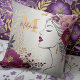 Voeg een vleugje elegantie toe aan uw ruimte met dit gepersonaliseerde werpkussen. Het ontwerp toont een sierlijk lijnkunstportret van een vrouw, omringd door rijke paarse en gouden bloemen, met aanpasbare mogelijkheden voor het initiaal en de naam. Perfect als een uniek geschenk of een chique accent voor uw woonkamer of slaapkamer decor.
