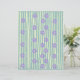 Paars bloemig ontwerp scrapbookpapier met fijne gele lijnen tegen een groene achtergrond voor papierambachten