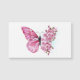 Langwerpige opstelling van roze vlinder met roze Japanse kersbloesems op witte achtergrond.