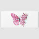 Langwerpige opstelling van roze vlinder met roze Japanse kersbloesems op witte achtergrond.