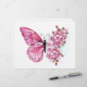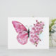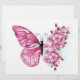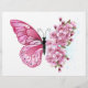 Langwerpige opstelling van roze vlinder met roze Japanse kersbloesems op witte achtergrond.