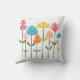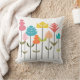 Dit kussen heeft een modern ontwerp van bloemen gemaakt van vierkanten, ovalen en diamanten die zijn gemanipuleerd om bloemen te vormen.