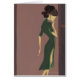 Blauwpaarse lijsten geven de diepte van dit afbeelding. Met een violette achtergrond staat de dame in een lichtere ruimte. De dame ziet er echter zijwaarts uit, wat meer afstand en mysterie geeft. In een donkergroene jurk is het cijfer dun en elegant afgebeeld, alsof er iets over haar hoofd flitst om haar vooruitgang tegen te houden.