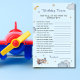 Add some sky-high fun to the celebration with this vintage airplane birthday trivia game. Set against soft blue skies with clouds and stars, it invites guests to test how well they know the birthday boy—perfect for laughs, memories, and a playful “time flies” themed party activity.
