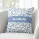 Blue and White Floral Botanical Custom Name Modern Kussen