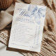 Deze elegante game heeft een charmante blauwe boog die perfect is voor een "iets blauw" vrijgezellenfeest. Ontworpen in een zacht pastel waterverf, combineert het romantische handgeschreven script met trendy grillige elementen. Ideaal voor een stoffig blauw vrijgezellenfeest.