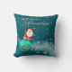 Help make your home or office more festive this holiday season with our adorable square throw pillow (different sizes and fabrics available) that features a darling Santa standing atop of teal-colored ornament, riding a wave of snowflakes.
