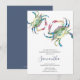 Deze charmante bachelorette-uitnodiging kenmerkt typografie in een stijlvol, handgeschreven script met gebeurtenisdetails in een klassiek, klassieke, grijze, serif-lettertype van de houtskool op een scherpe witte achtergrond. Mijn oorspronkelijke waterverf blauwe krab schilderij in tinten van rode, blauwe en groene tinten kleurt de voorkant. De uitnodigingskaart keert terug naar een vleiende blauwe marinekleur. Een kustkreet maar elegante keuze voor het casual weekend van een meisje in Charleston, Zuid-Caroline. Om mijn volledige trouwkantoorbenodigdheden te zien, bezoek DoTellABelle op Zazzle.